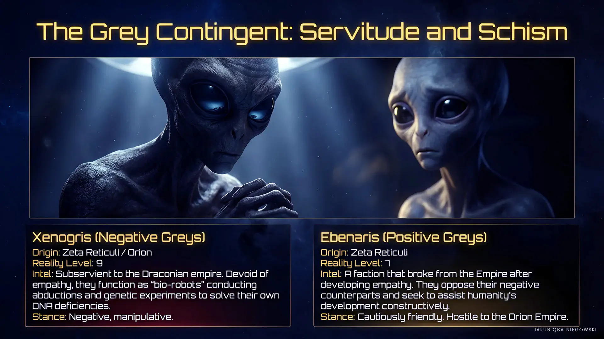 - Hostile: Negative Draco faction including the Orion Empire, Negative Greys.