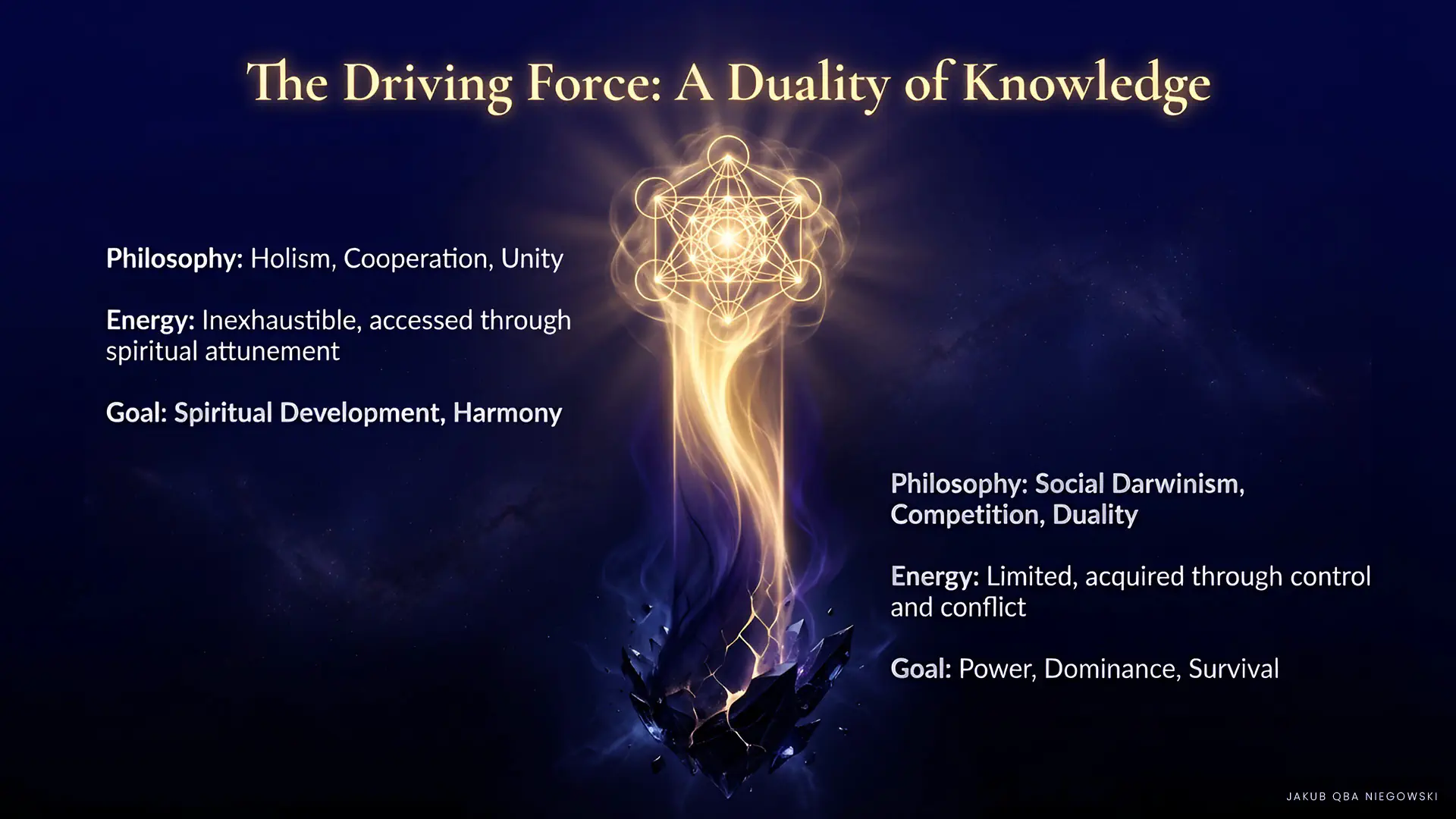 - Philosophy: Based on social Darwinism, where the strongest survive, and competition is the fundamental mechanism of operation. The world seen through the prism of duality—good vs. evil, us vs. them. Such philosophy fosters conflicts and struggles for power.