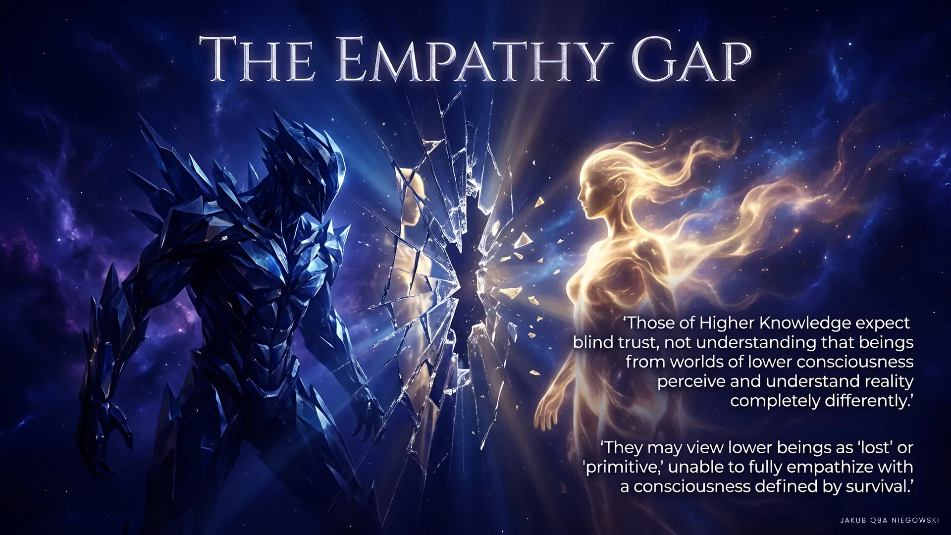 - Spirituality: Deep, focused on unity, love, cooperation, and harmony. Understanding spiritual laws and higher purposes of existence. High consciousness usually unable to empathize with the perspective of beings in Lower Knowledge despite a declarative desire to invite them to become like representatives of Higher Knowledge. These individuals often believe that cooperation and love are natural states of being, which can lead to misunderstandings with individuals of lower degrees of knowledge.