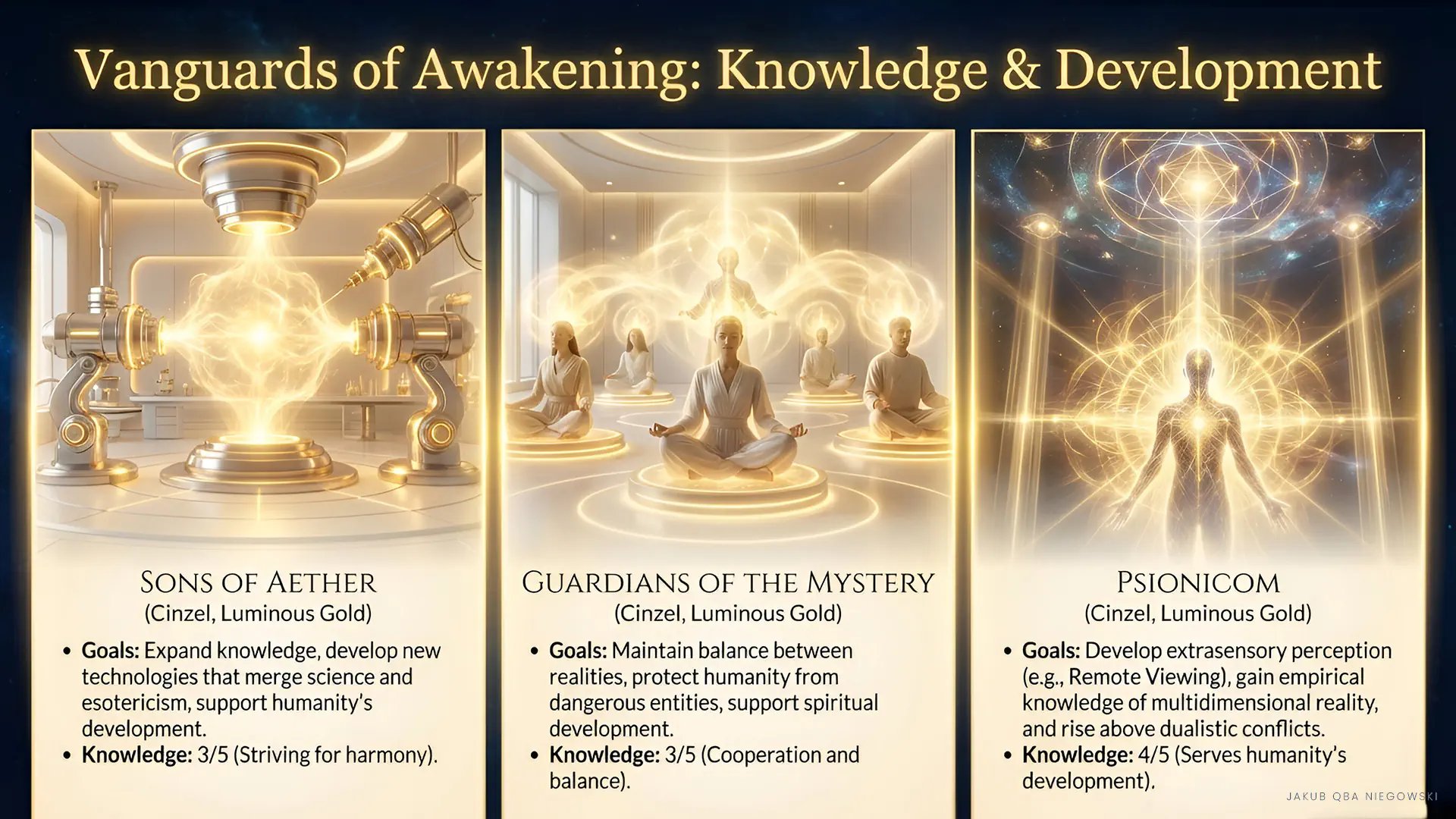 • Knowledge: 4 out of 5 (because they serve not only themselves but also others, and by choosing to rise above dualistic conflicts – they primarily use Higher Knowledge).