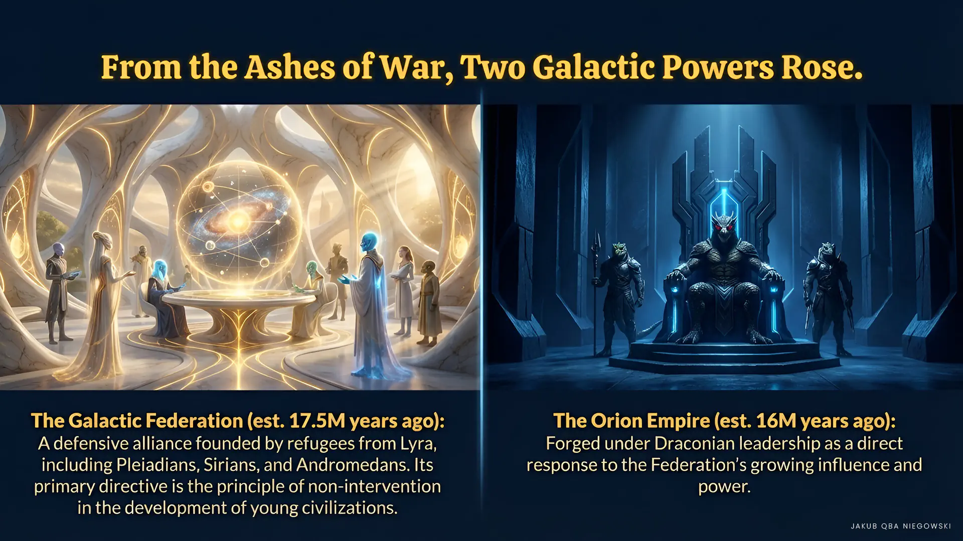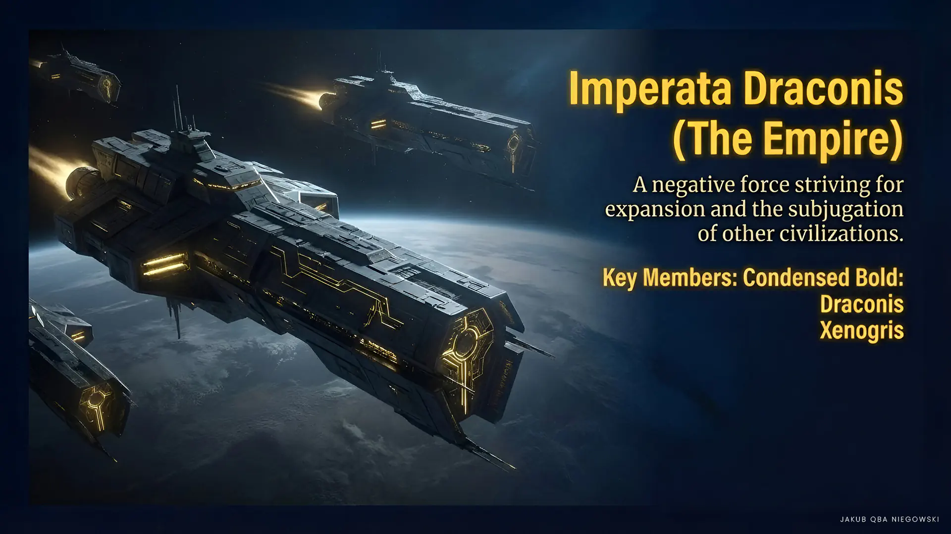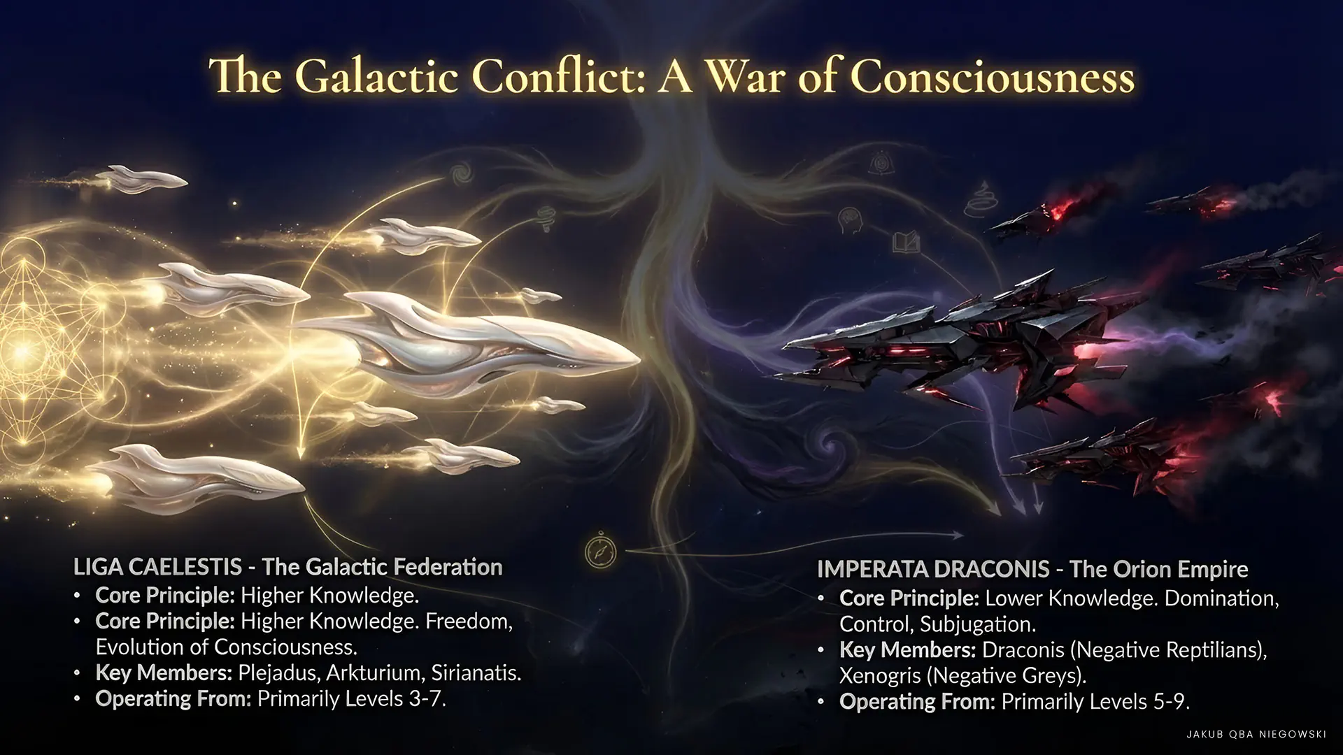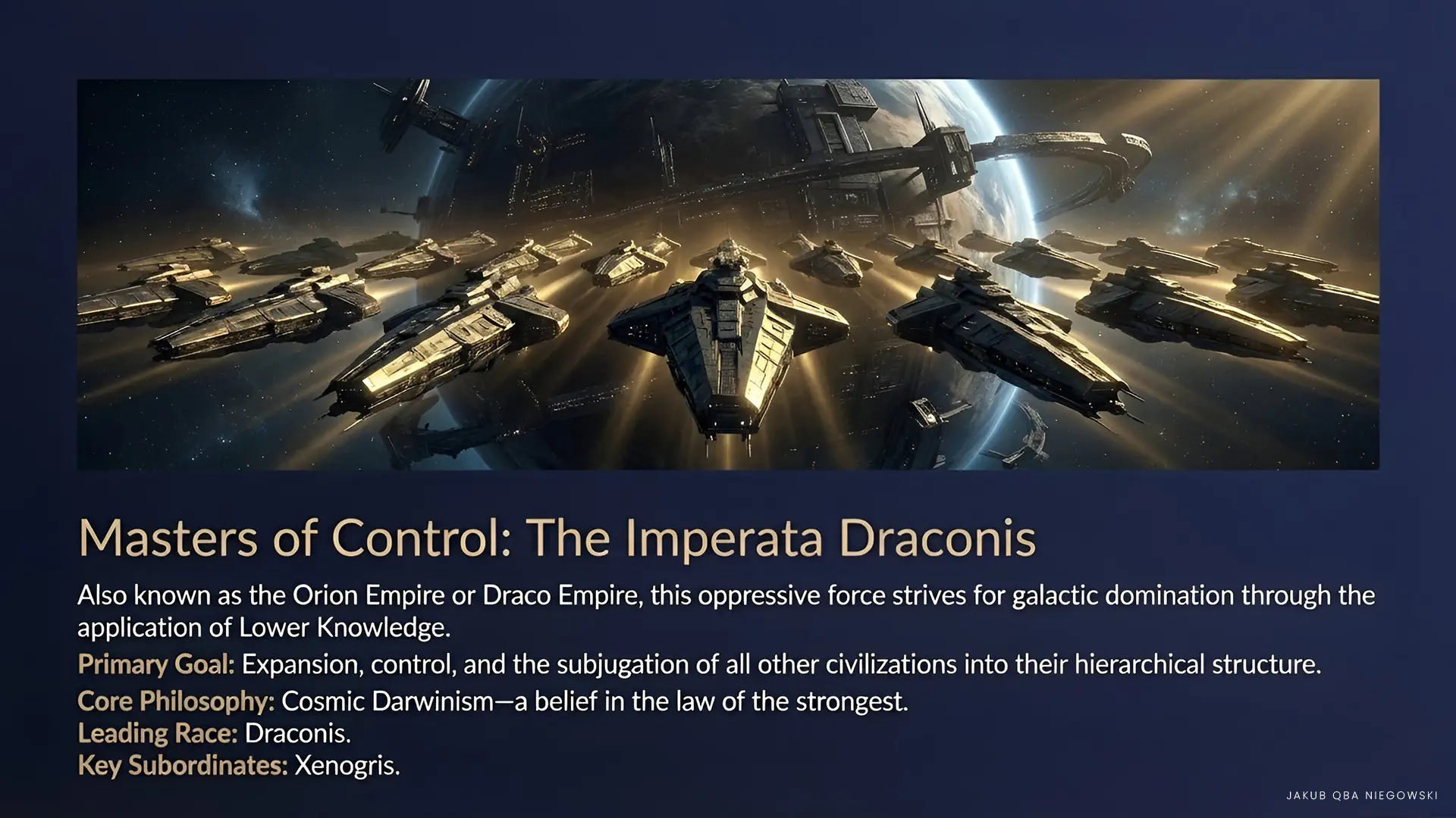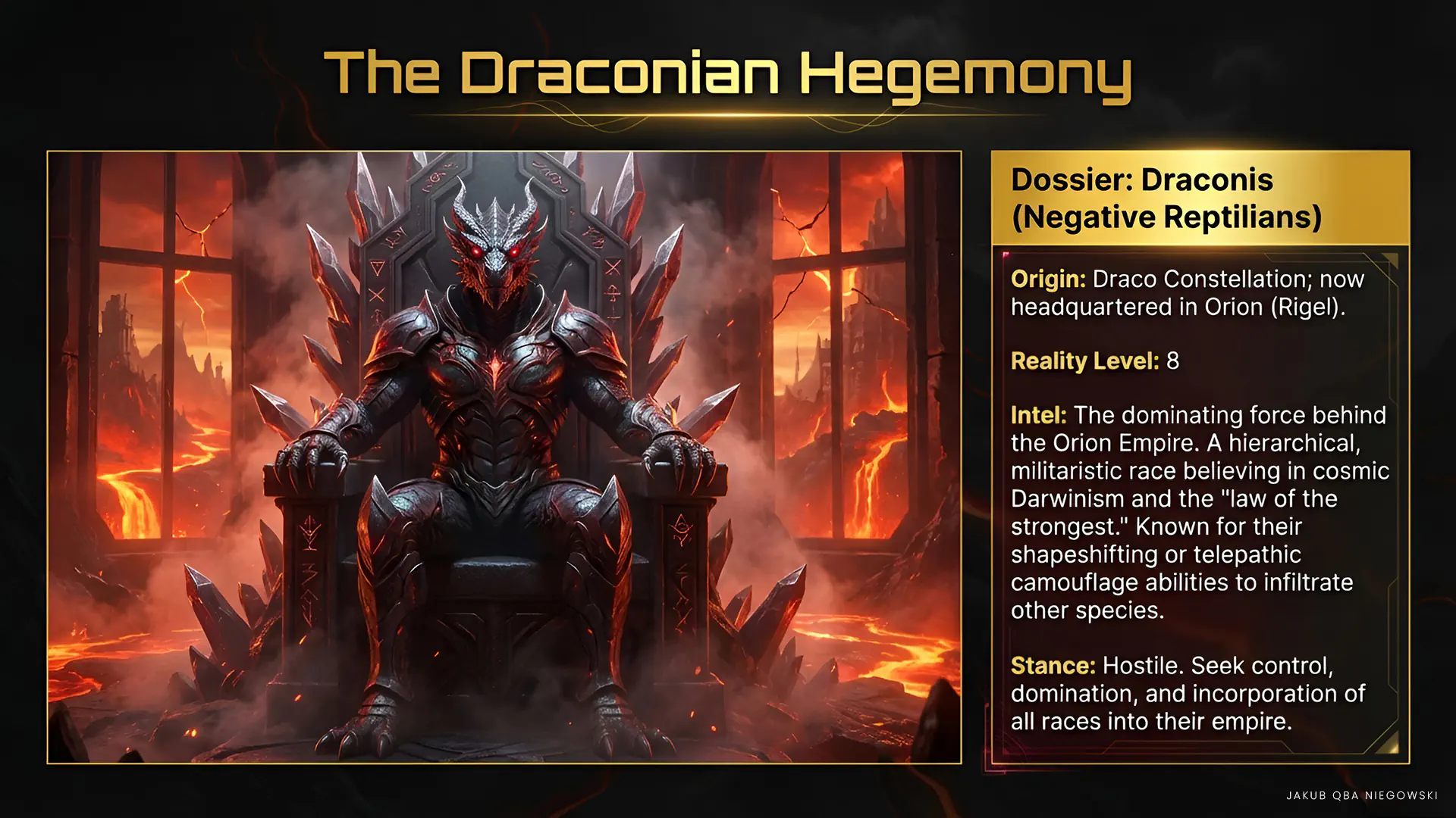 • DRACONIS (Negative Reptilians) The main force of the Empire, striving for galactic domination. They specialize in manipulation, mind control, and advanced military technologies. They often operate from hiding, infiltrating governments and institutions of other civilizations.