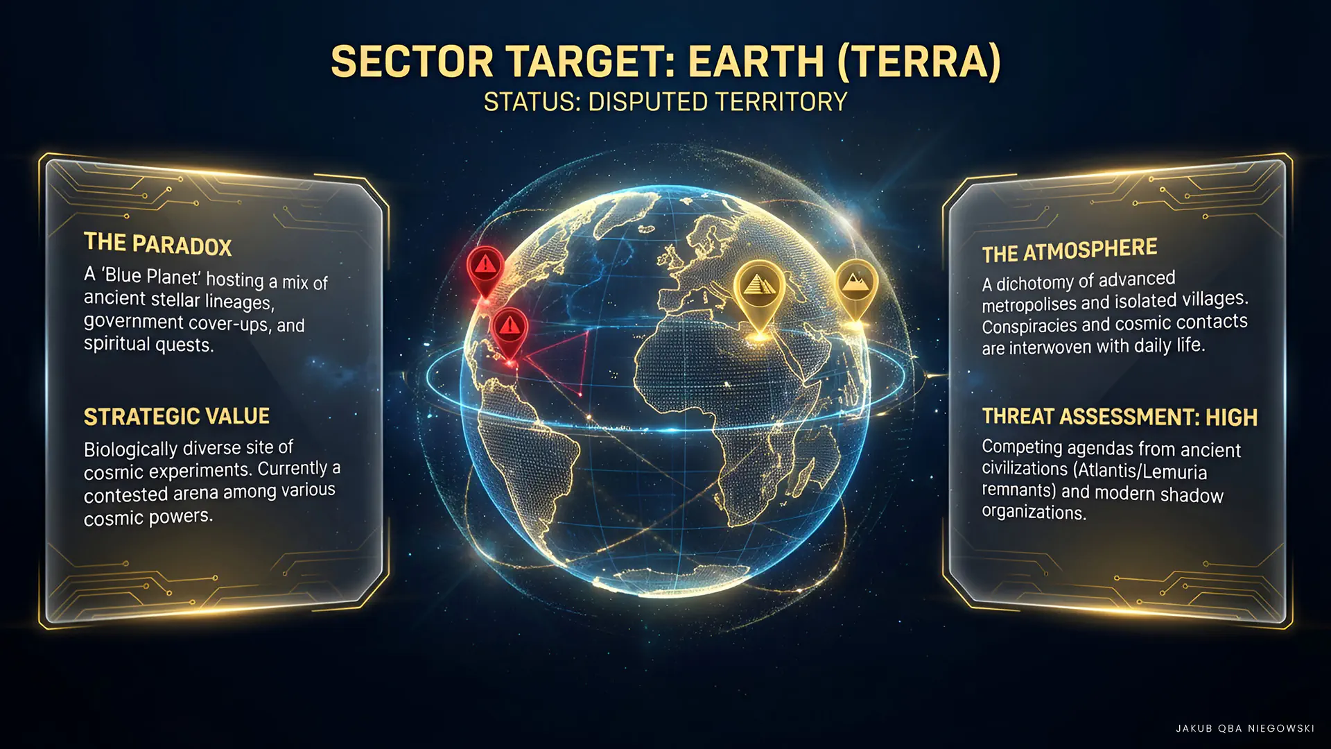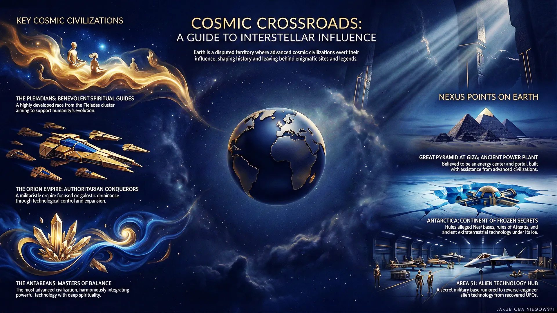 Earth, also known as the “Blue Planet,” is a place full of mysteries and extraordinary phenomena, attracting the attention of numerous extraterrestrial civilizations. It is an arena where the histories of ancient stellar lineages and civilizations, hidden governmental agendas, and spiritual quests intertwine. From the mysterious structures in Giza to underground bases of non-human races, Earth conceals many secrets waiting to be discovered by brave adventurers.
