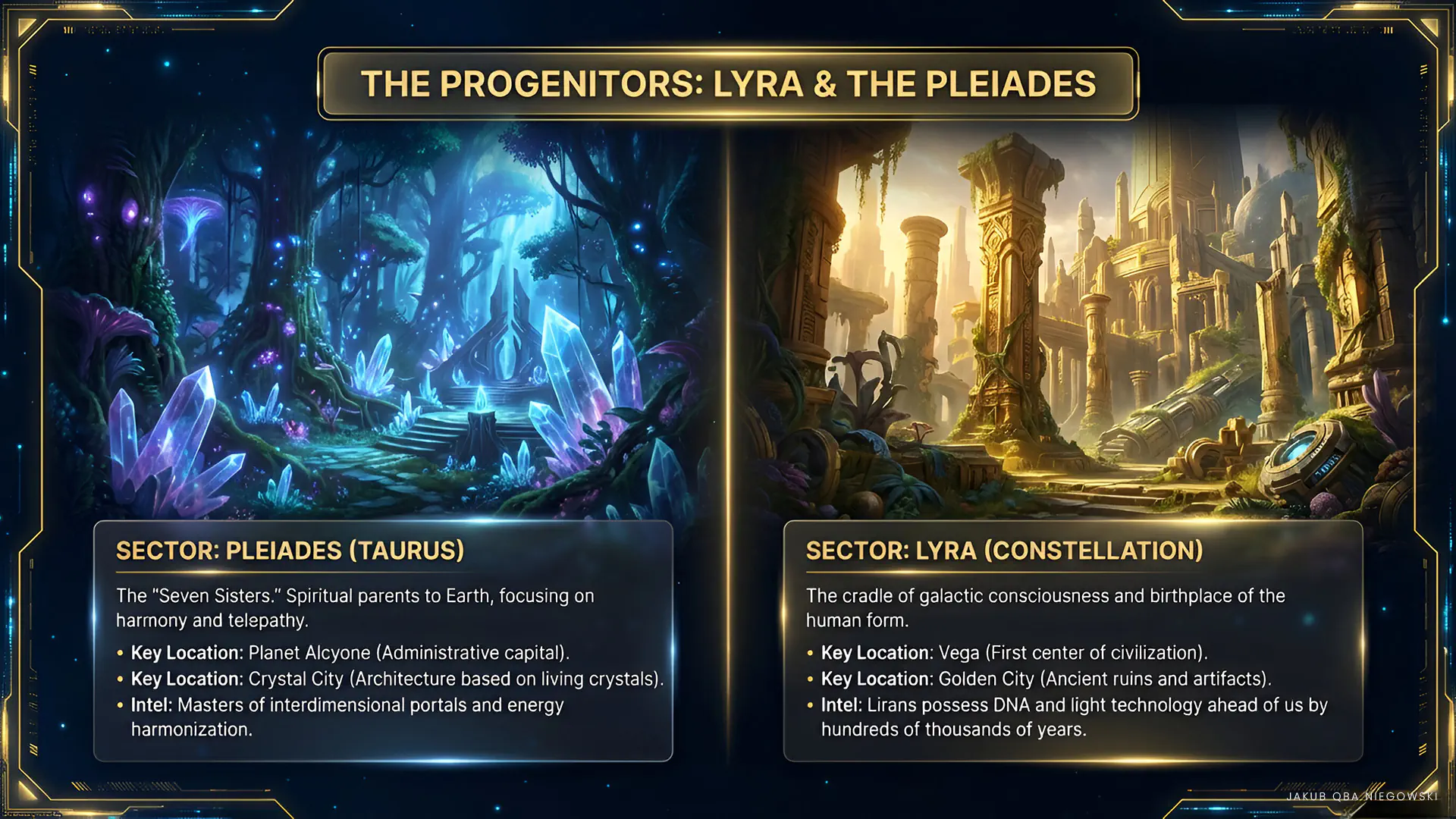 Lifestyle: The inhabitants of Lyra live in harmony with nature, using advanced technology that is fully integrated with their spiritual and physical environment. Society is organized around values such as peace, harmony, and spiritual development. Technology not only improves quality of life but also strengthens the spiritual bond between inhabitants.