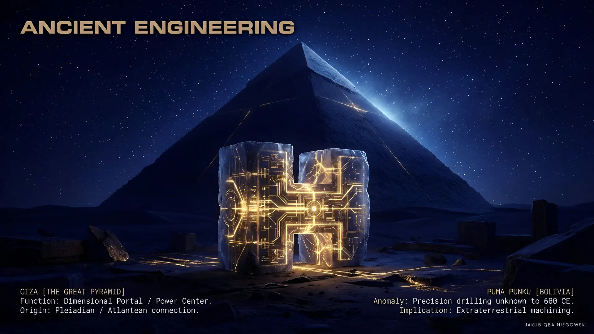 History and Significance: The Great Pyramid at Giza is one of the most iconic monuments on Earth. It consists of about 2.3 million limestone blocks, and its construction remains one of the greatest achievements of ancient engineering. Theories of the initiated suggest that its construction could have been supported by an advanced civilization possessing advanced technology unknown to us today.