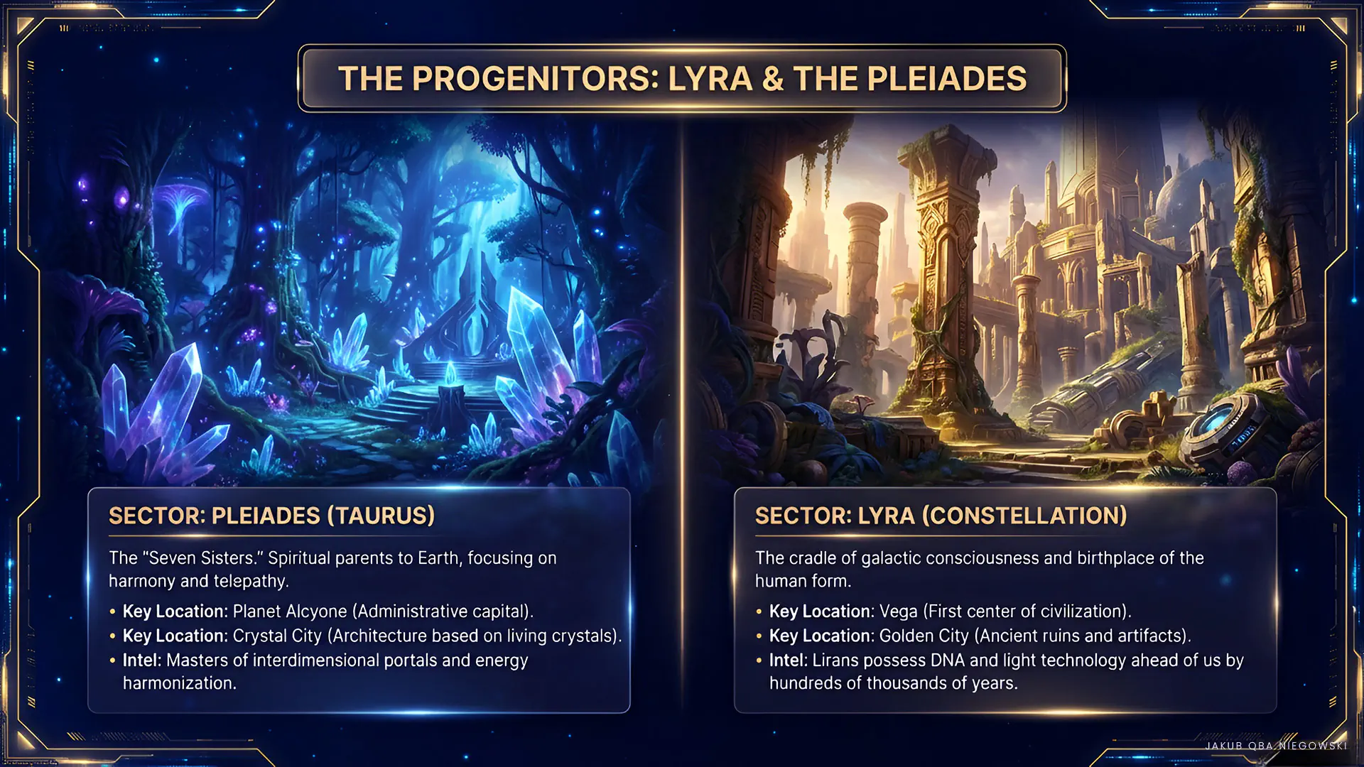 History and Significance: Lyra is considered the cradle of one of the most advanced civilizations in our galaxy. Legend has it that the Lirans were the first to discover technologies enabling interstellar travel and knew the secrets of the spiritual and physical unity of the universe. Many ancient texts and transmissions indicate their influence on the development of Earth civilizations, including Sumerian, Egyptian, and Mesoamerican.