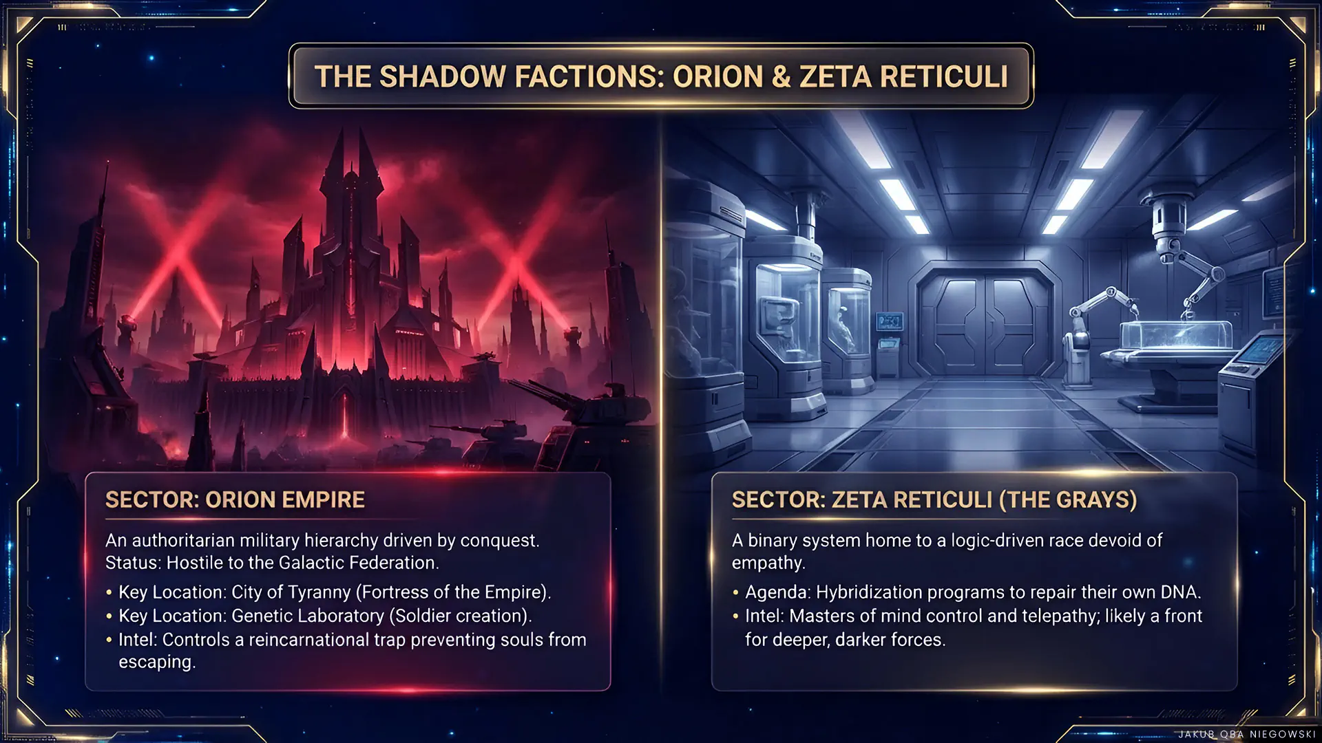 - Races Inhabiting Orion: The Orion system is inhabited by various races, including Reptilians, which have different goals and methods of operation. Some of them are peacefully inclined, while others seek dominance.