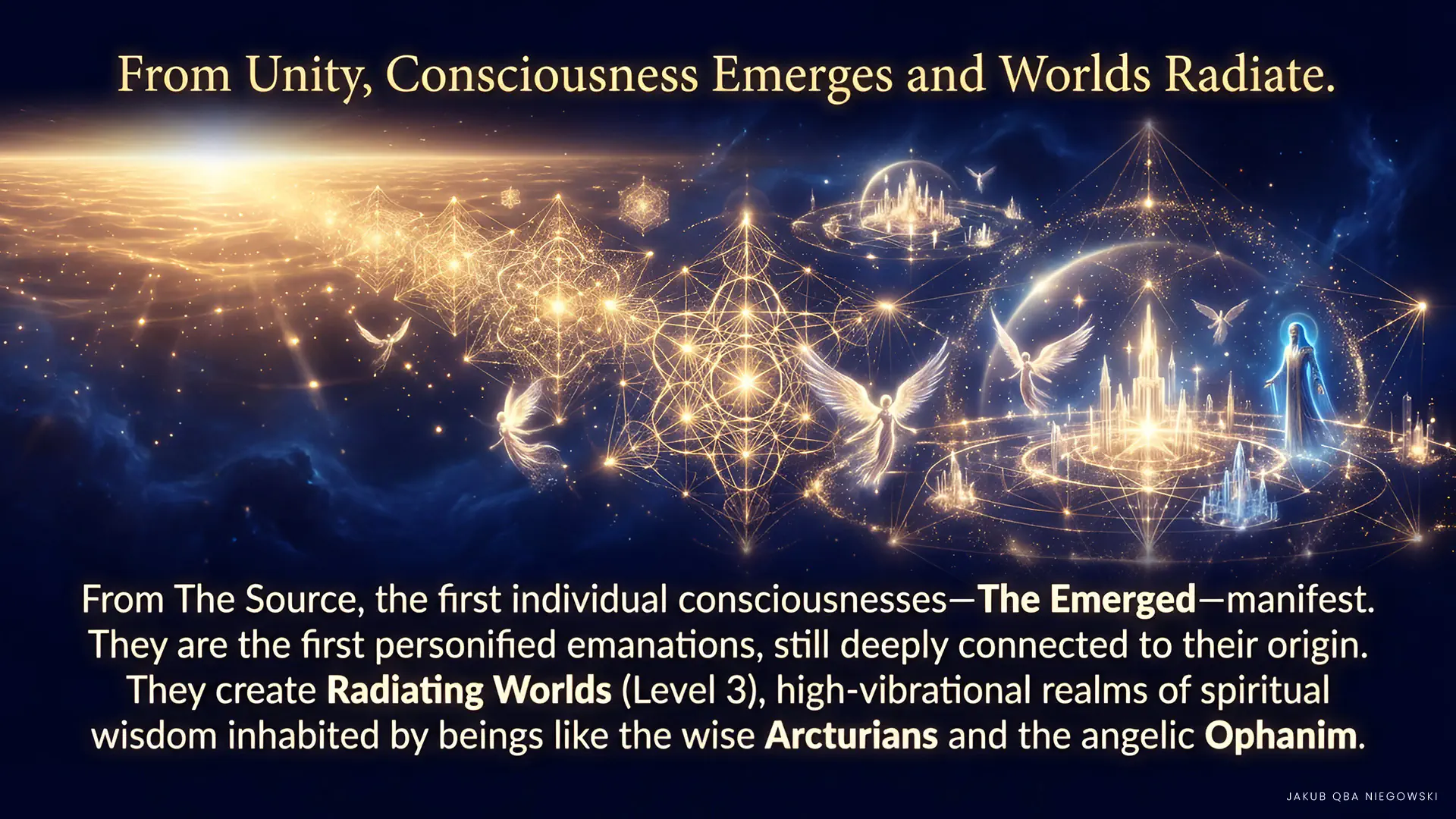 • Positive Interaction: The Emerged inspire Radiating Worlds, providing them with the highest knowledge and spiritual energy.