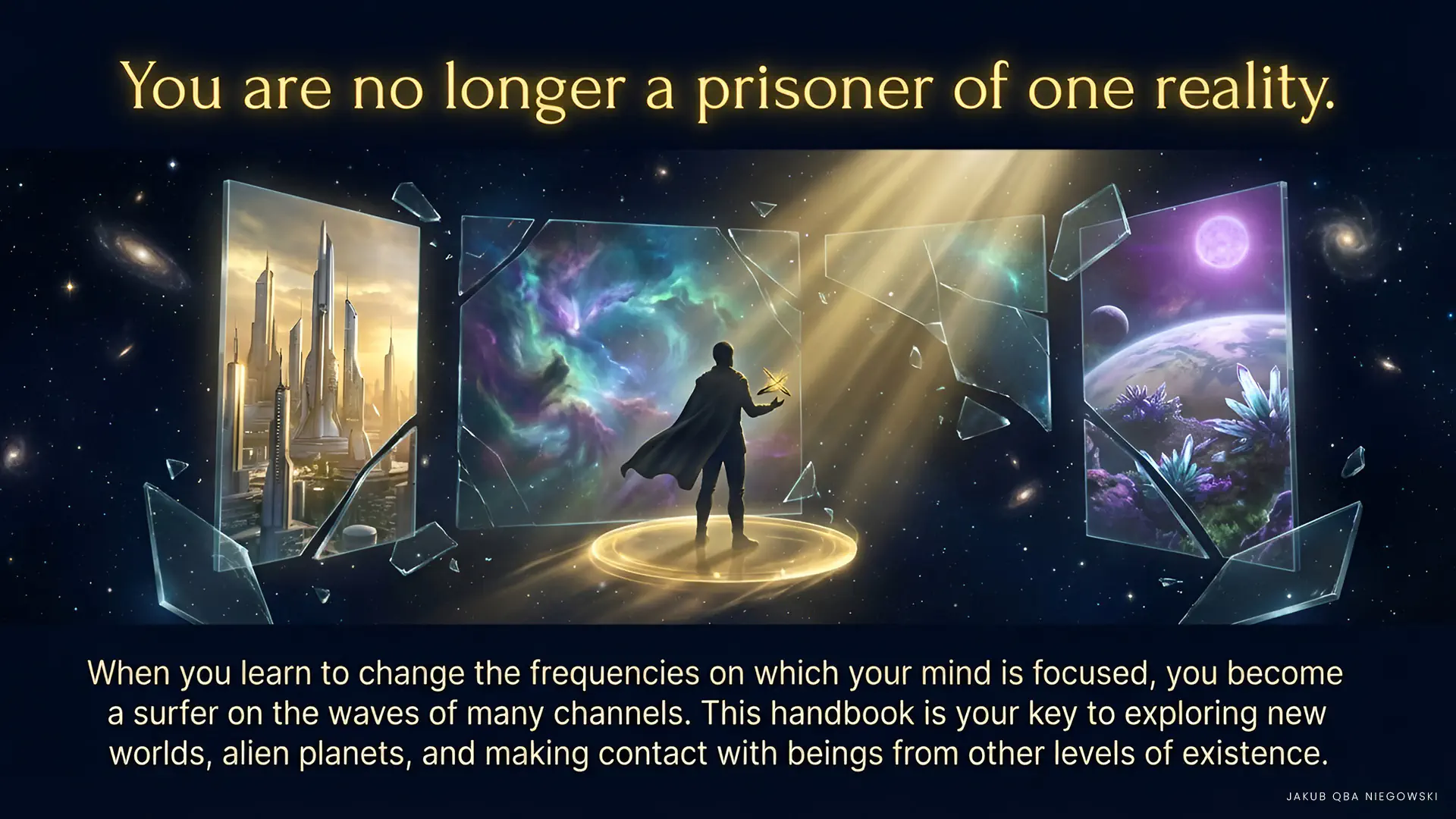 This handbook is your key to hidden worlds. You gain the opportunity to explore new worlds, levels of existence, alien planets and make contact with beings from other levels of reality.