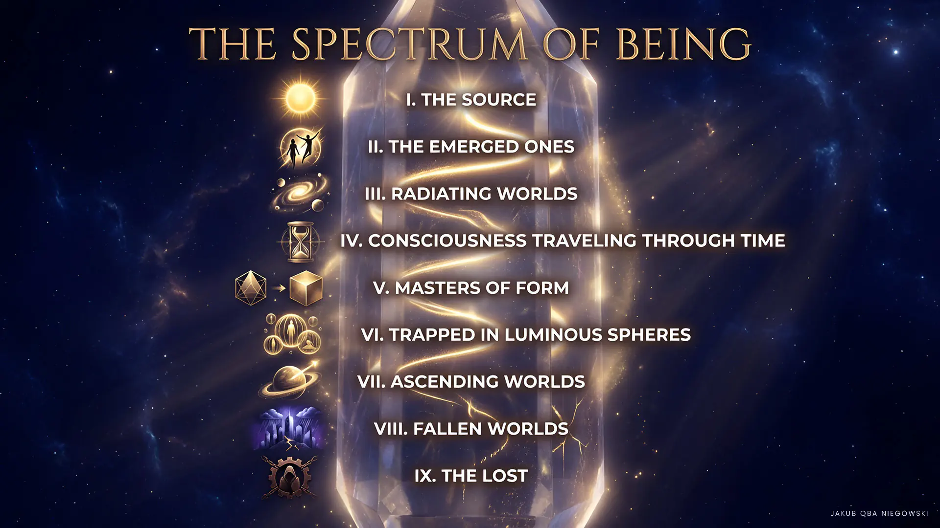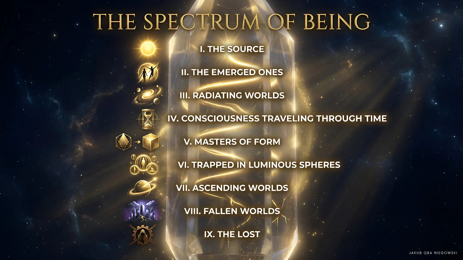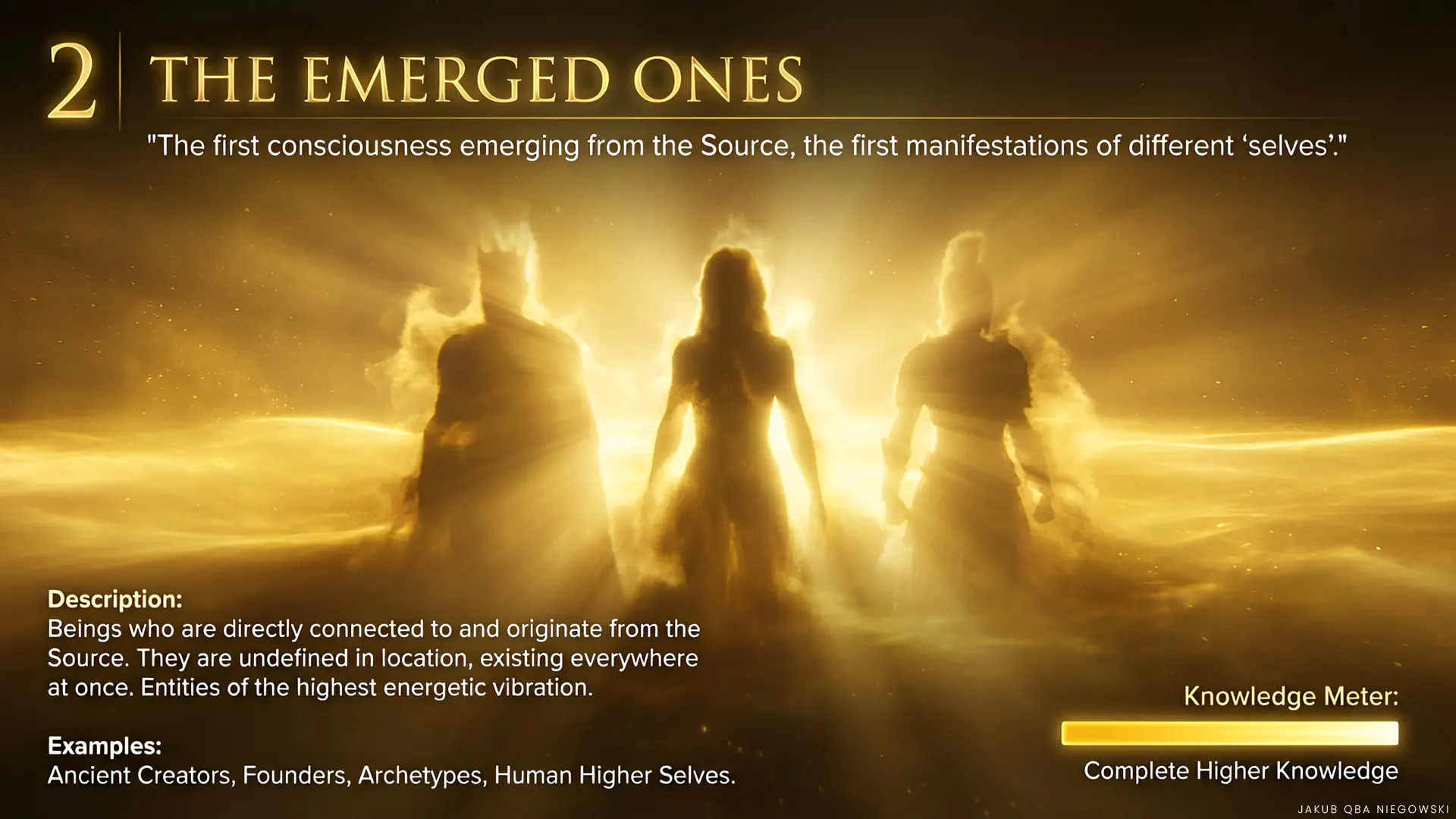 - Description: The first consciousness emerging from the Source, still strongly connected to it at a conscious level, the first manifestations of different “selves” originating from the Source. Undefined in terms of location in a specific region of space—like the Source—they are everywhere at once.Beings who are directly connected to the Source. Their entire existence originates from the Source. These are entities of the highest energetic vibration and consciousness.