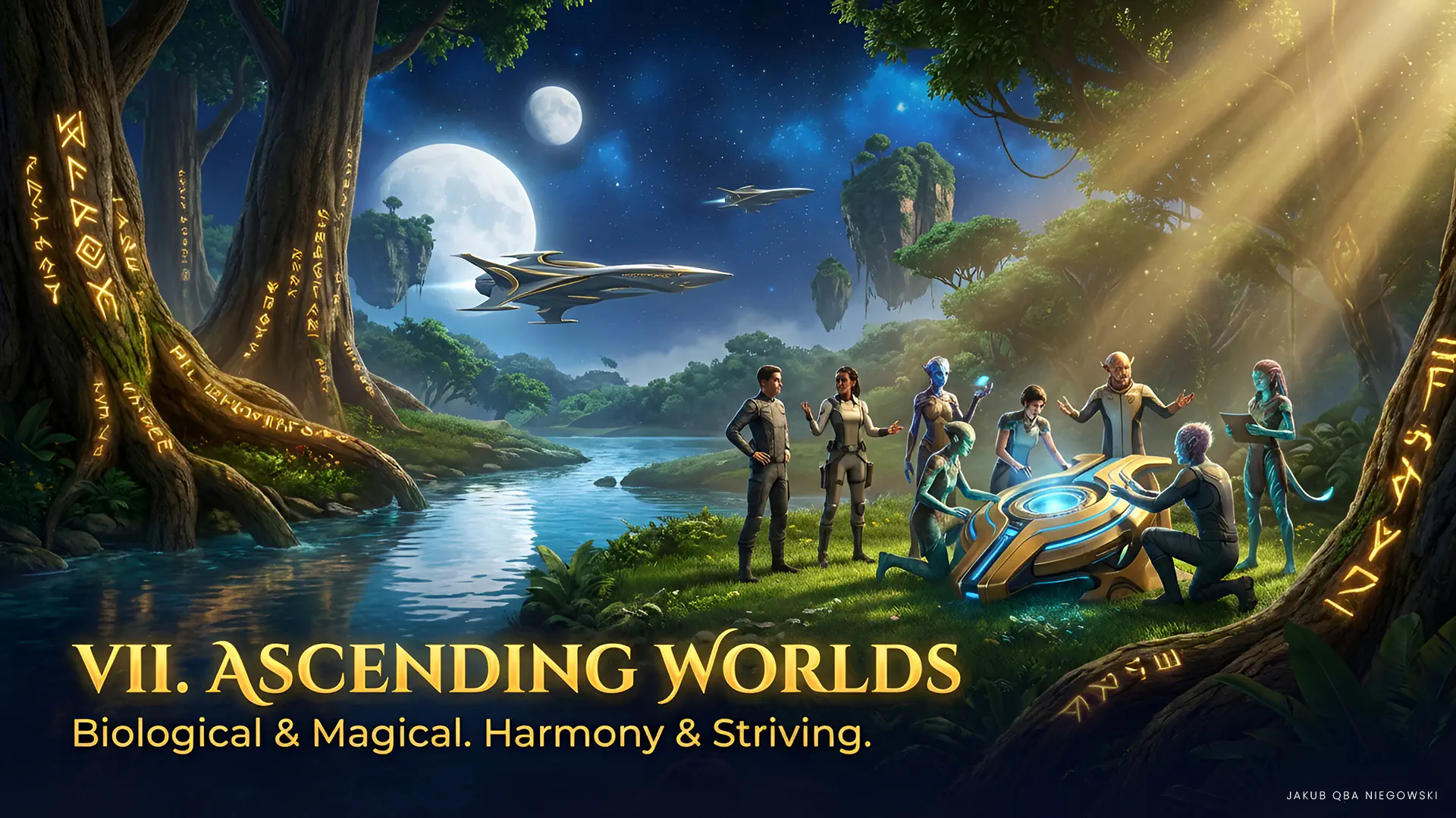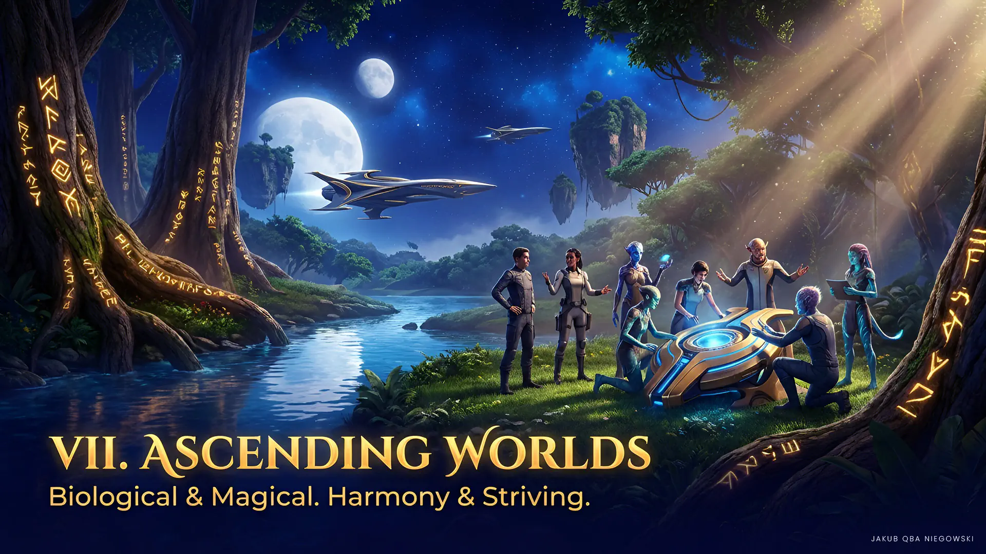 - Description: Biological frequency with visible influence from higher worlds. Worlds that sometimes look like something from our fantasy stories where magic (energy from higher worlds) takes on a visible, physically perceptible form, or technology allows for connection and cooperation with higher dimensions of existence. These civilizations are on the path to understanding their role in the universe, developing spiritually and technologically, intuitively striving for harmony with the Source.
